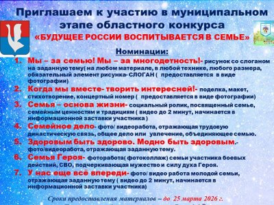 "Будущее России воспитывается в семье". Приглашаем к участию семьи!