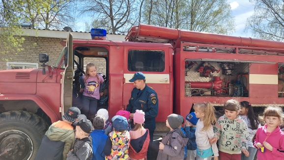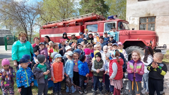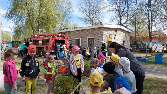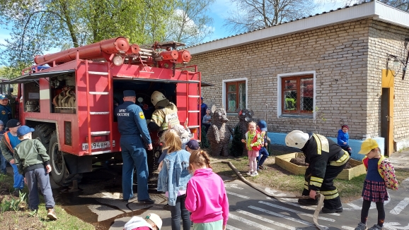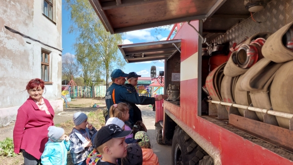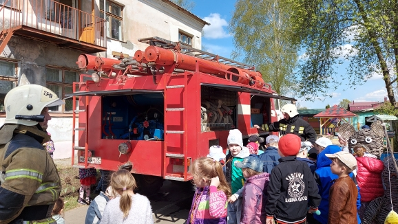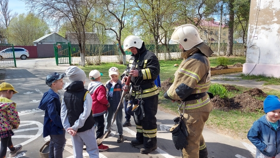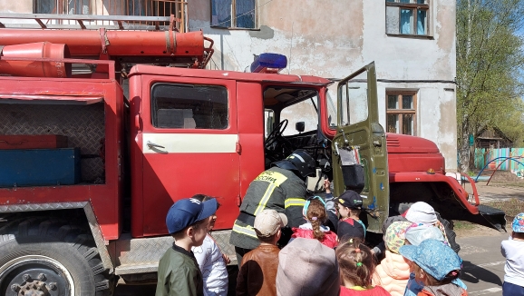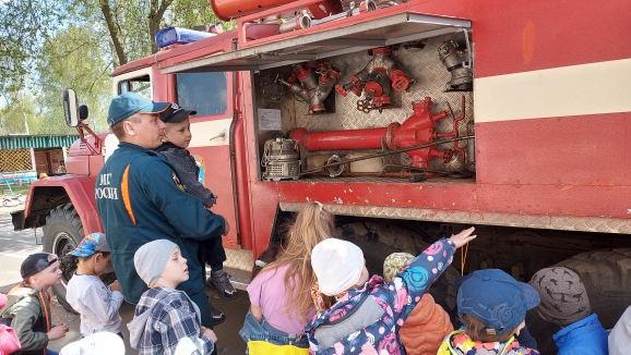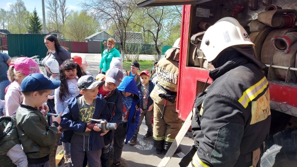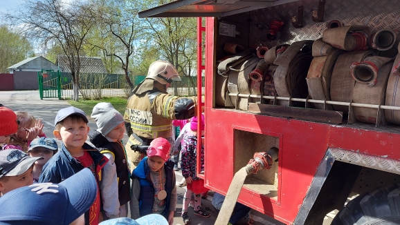 Они провели с детьми ознакомительную беседу о содержимом пожарной машины, раскатали пожарные шланги, показали их работу в действии. Многие ребята посидели за рулём внутри машины, рассмотрели пожарные лестницы и специальные костюмы пожарных.