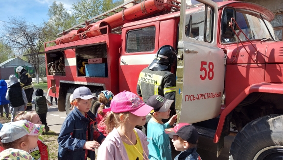Сегодня в саду насыщенный событиями день. В гостях у ребят были сотрудники # 58 пожарной части г. Гусь - Хрустальный.