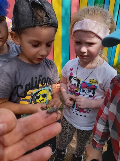 А в средней группе "Непоседы" дети с интересом рассматривали на прогулке жука - усача или дровосека.