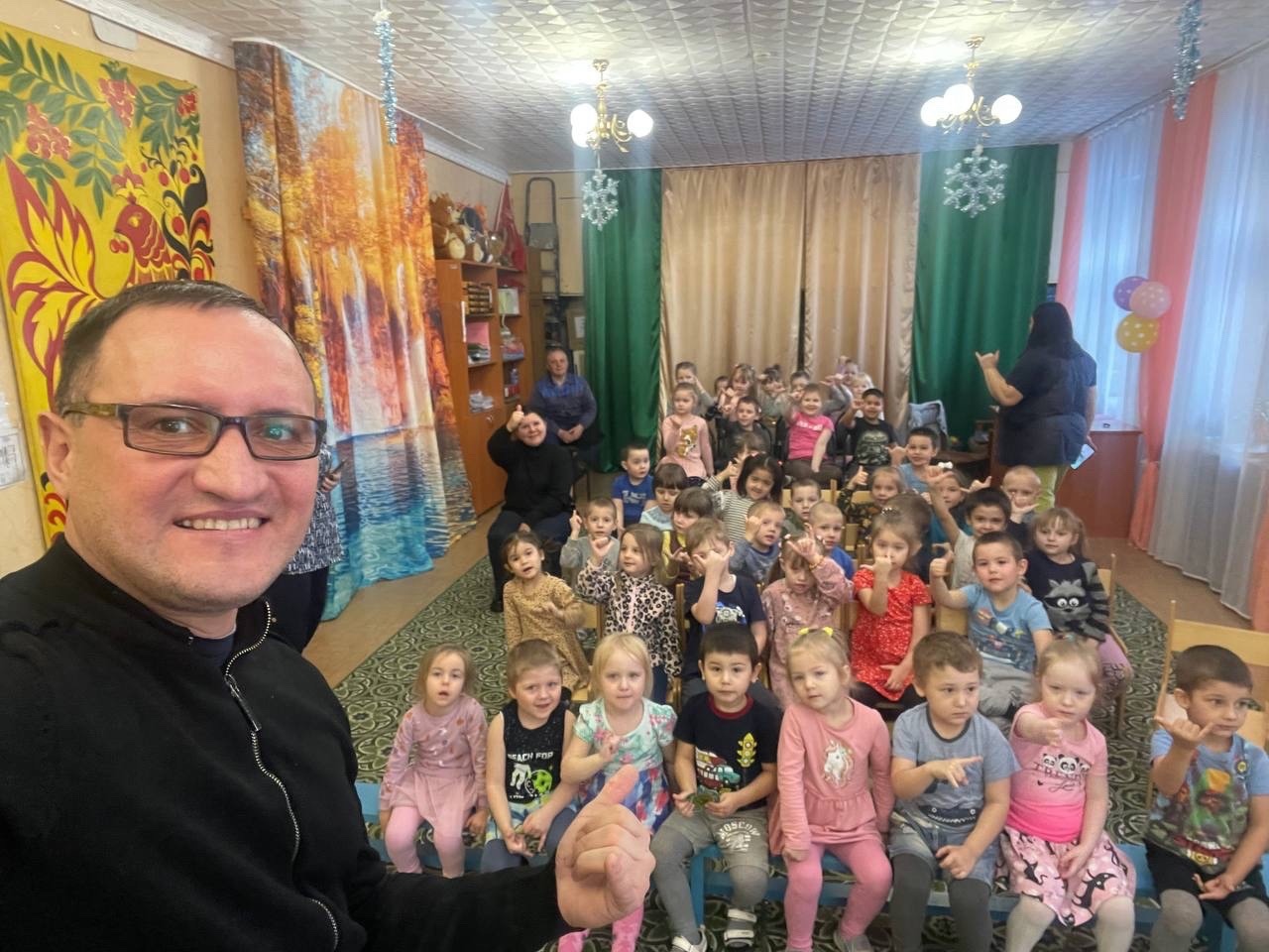 6 декабря 2023 г. с детьми старшего дошкольного возраста состоялась встреча с волонтёром Александром Буистовым. Александр уже много раз совершал гуманитарные поездки в зону СВО. Он помогает, чем может: доставляет грузы ( медикаменты, вещи, сладости) и видео-приветы для наших защитников.