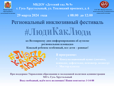 Мероприятие состоится на базе ДОО № 9 - 29 марта 2024 года с 8.00 до 12.00