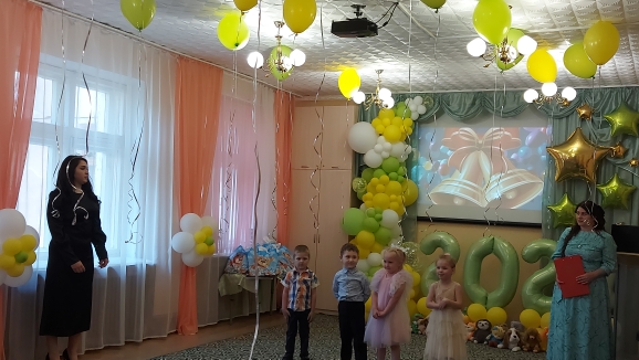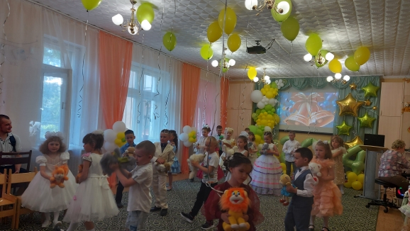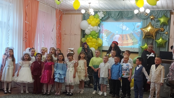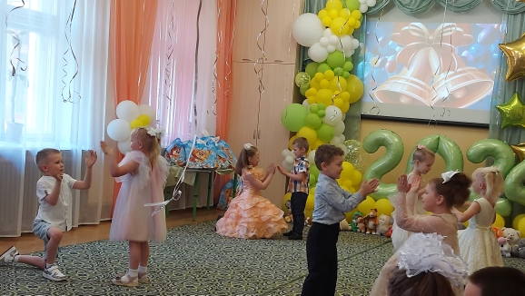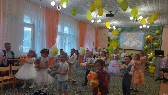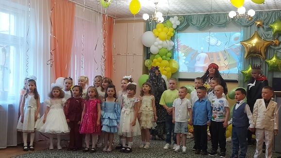 Ярко, звонко, с весёлыми танцами и песнями, видеофильмом " Как все начиналось: от малыша до выпускника" , подарками от родителей, напутственными речами от заведующего Быковой А.В. и конечно же сюрпризом от воспитателей ДОО, исполнившими роли сказочных персонажей: Шапокляк ( Николаева И.В), Кощей( Гоголева И.М), Леший ( Гоголева А. В.), Баба Яга ( Коева Н.М ) праздник прошёл на одном дыхании.
