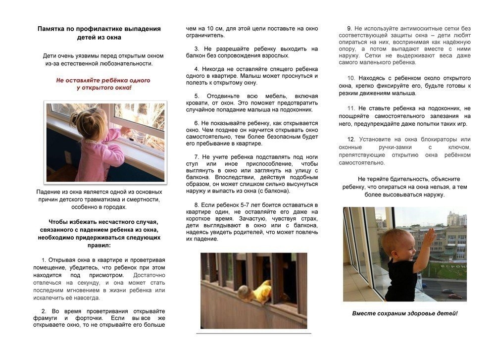 Падение из окна является одной из основных причин детского травматизма и смертности, особенно в городах. Дети очень уязвимы перед раскрытым окном из-за естественной любознательности.