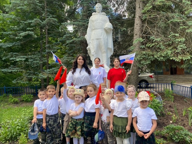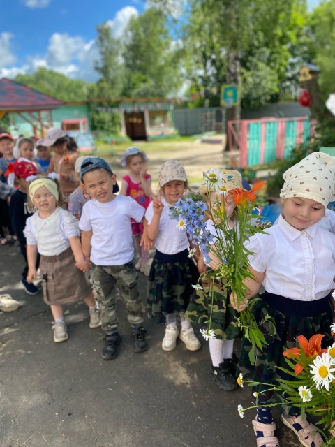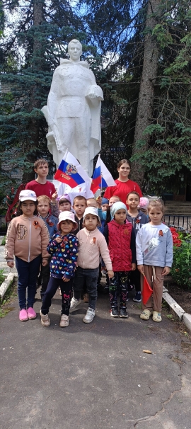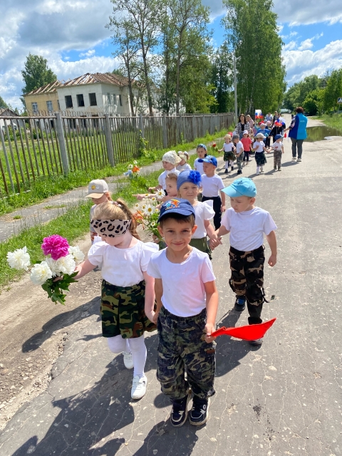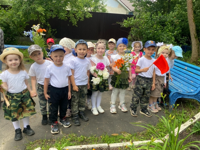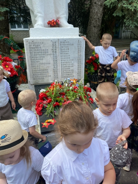 В преддверии 22 июня «День Памяти и Скорби» ребята из старшей и подготовительных групп почтили память о погибших в годы Великой Отечественной войны, возложили цветы к памятнику Неизвестному Солдату, прошлись в импровизированном строю по улицам нашего посёлка.