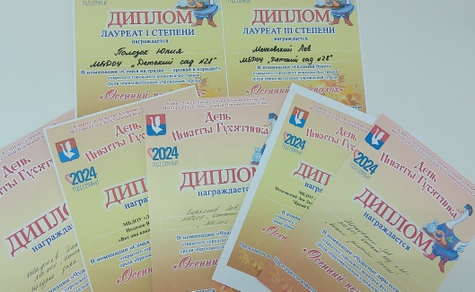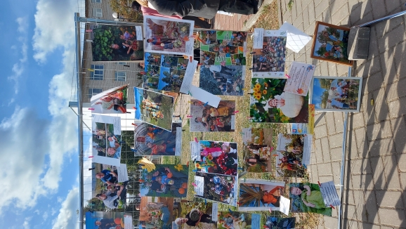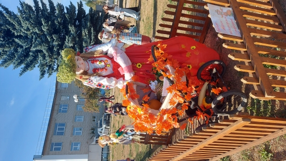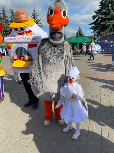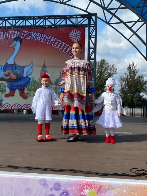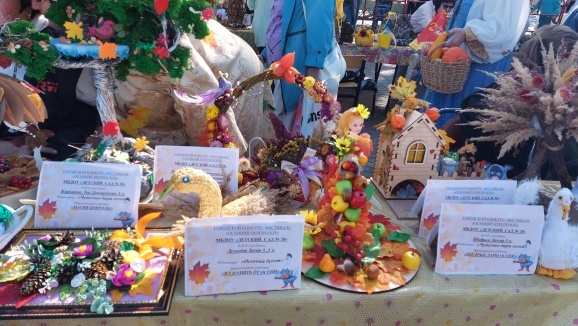 На ярмарке были представлены творческие работы из природного материала, сделанные нашими творческими семьями. Воспитанница старшей группы Илюхина Александра достойно представила наш сад на главной сцене в дефиле костюмов " Гусиный карнавал ".