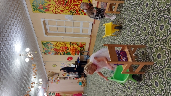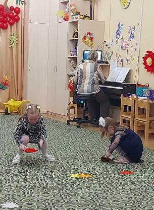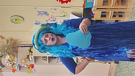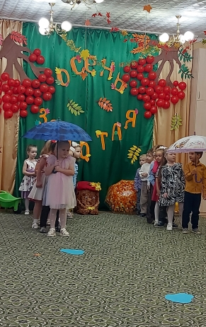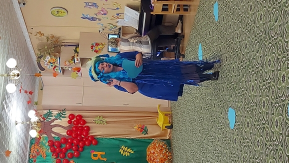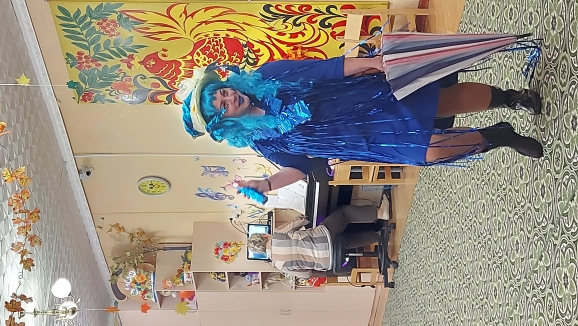 Не обошлось без сюрпризов- в гости приходила Непогодица( Синицкая Ольга Сергеевна) и Осень( Гоголева Алевтина Витальевна) со своими заданиями для ребят.