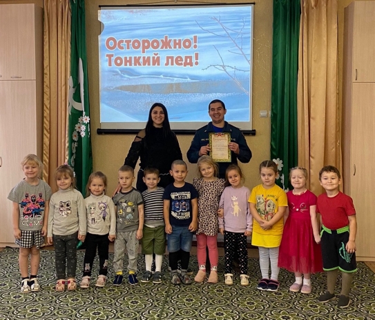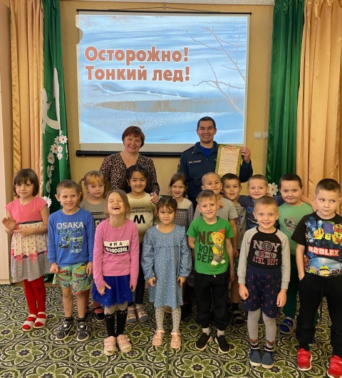 В рамках месячника безопасности людей на водных объектах в осенне- зимний период 20 ноября 2024 года состоялась познавательная встреча с сержантом внутренней службы МЧС России по г. Москва Могучим Артёмом Дмитриевичем. С ребятами средней, старшей и подготовительной групп проведена профилактическая беседа по темам «Опасности на воде» «Осторожно, тонкий лед!» «Правила поведения на тонком льду»
