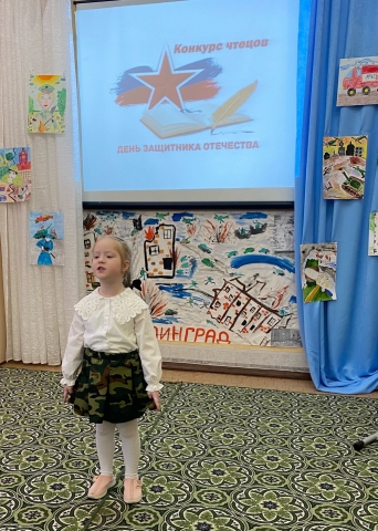 Ребята старшей и подготовительной групп представили на суд зрителей стихи военной тематики и свои рисунки. На муниципальный этап конкурса путевку получила воспитанница подготовительной группы Фаррухзода Фарангис. Пожелаем ей и педагогу Николаевой Ирине Викторовне удачи!