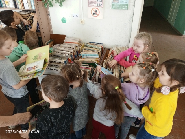 3 апреля 2025 года ребята из средней группы "Звёздочки" и подготовительной группы "Мультяшки" в рамках тематической недели "Книжкина неделя" посетили библиотеку ГБИЦ п. Гусевский.