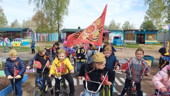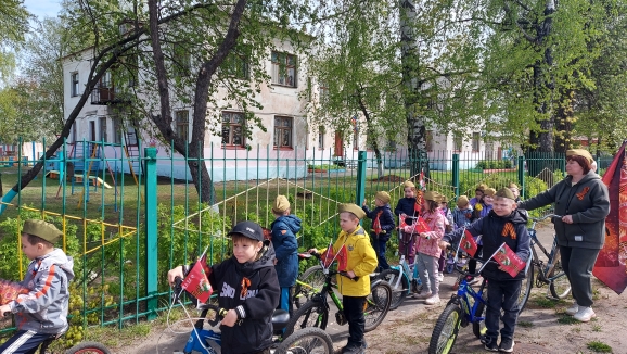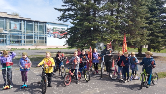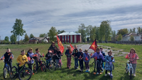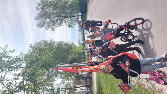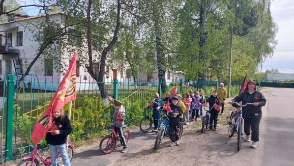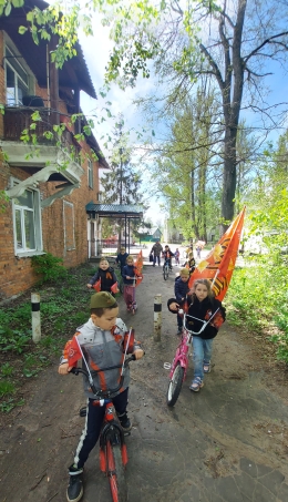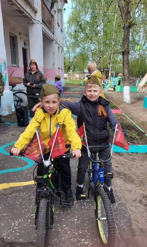 Ребята прошлись и проехали по маршруту , украсив свои велосипеды и самокаты флагами и символикой Победы.