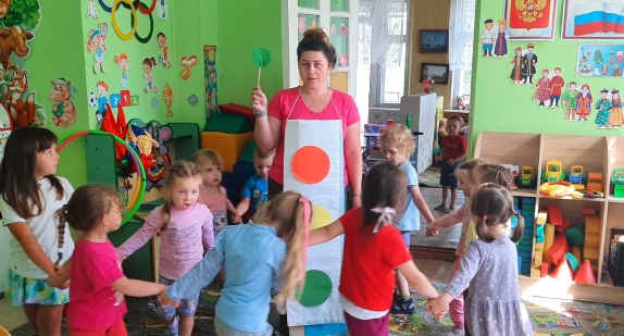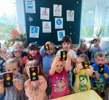 День Светофора в детском саду. Ребята закрепляют свои представления.