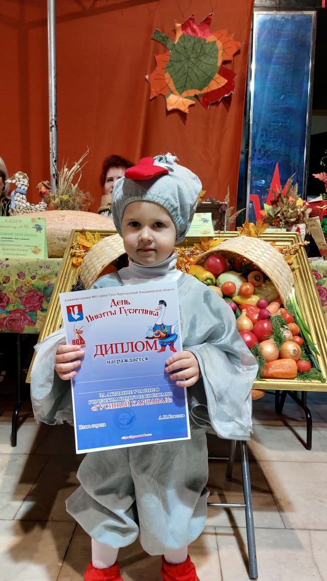 Самые маленькие воспитанники группы "Мультяшки" Кирьянов Борис и Тихонова Виктория приняли участие в дефиле костюмов "Гусиный карнавал", поразив всех присутствующих своими творческими нарядами