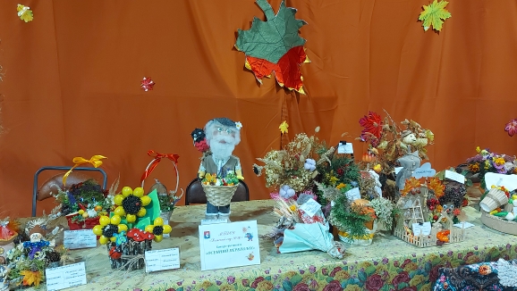 4 октября 2025 года в МБУК "ЕСКЦ" принимал творческие работы из природного материала. Наш детский сад представляли творческая работа "Осенние стиляги" воспитанниц подготовительной группы Борисовой Лии и Илюхиной Александры в номинации "Пугало немодное- заморское, огородное", а также поделки из природного материала семей Волковых, Шафиевых, Соколовых.