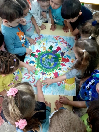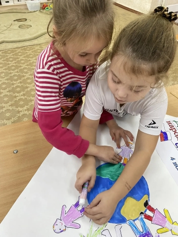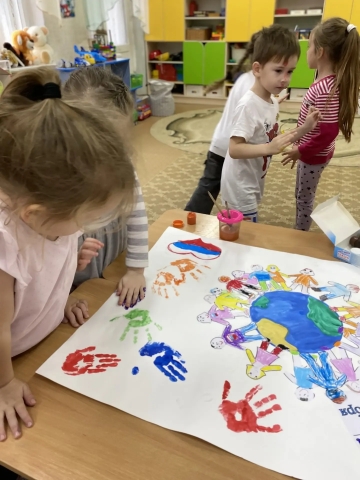 Ребята с удовольствием изготовили плакаты "Вместе - мы сила!", "Дружат дети всей Земли", оставив на них маленькую частицу своей души, свои отпечатки ладошек и творческие рисунки и аппликации.
