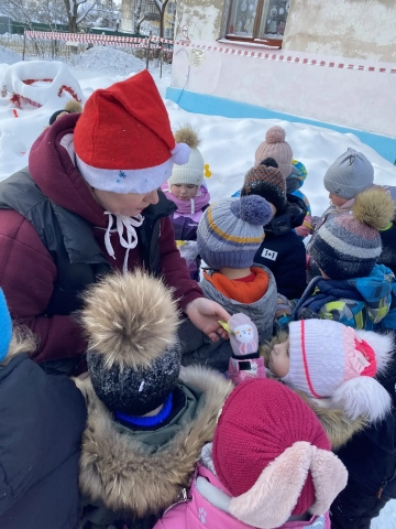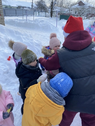 Вместе со Снеговиком☃ ребята выполнили зажигательную разминку, поиграли в игры и сделали памятное фото у Елочки.