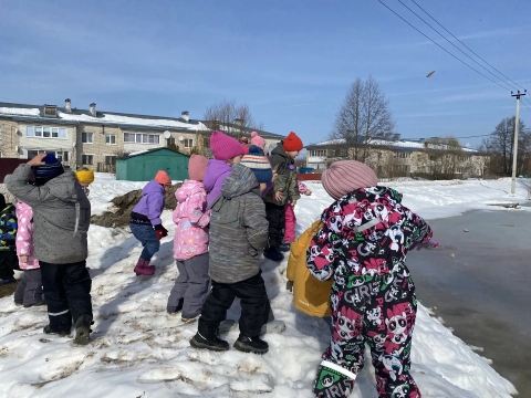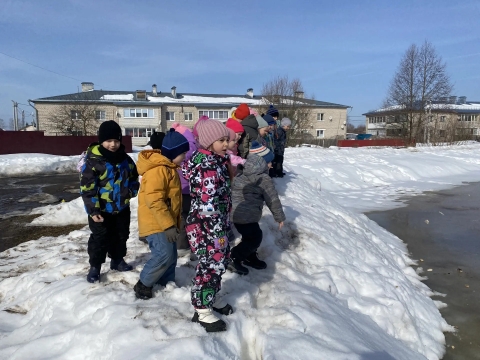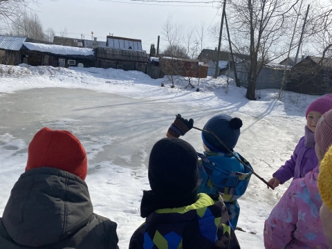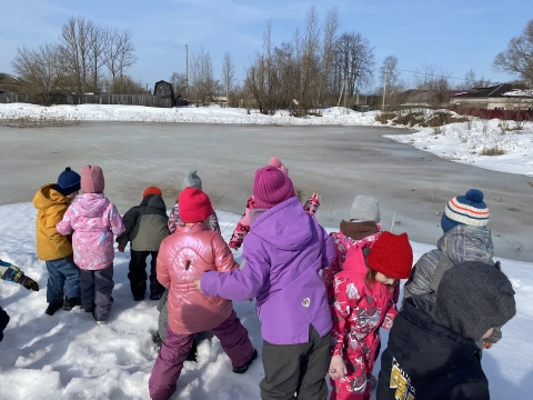 В рамках месячника безопасности на водных объектах в весенний период 18 марта 2026 года с детьми подготовительной группы проведена познавательная экскурсия к водоёмам ул. Пионерская и Садовая !
