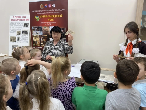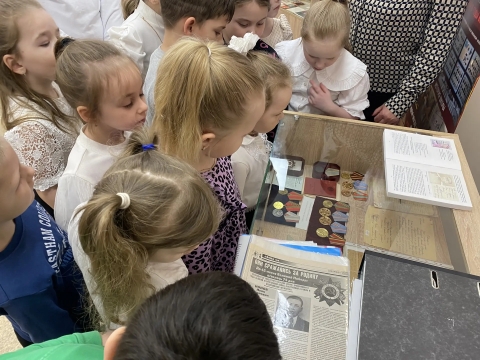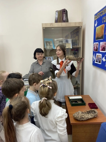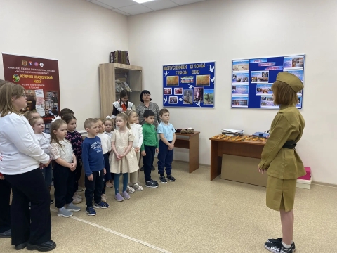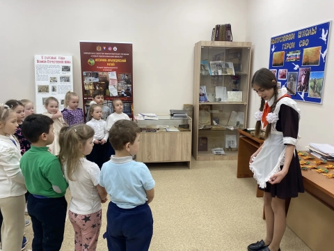 23 апреля 2026 года наши Непоседы посетили школьный музей. Учитель истории Медведева Наталья Вячеславовна вместе со своими учениками рассказали ребятам о Великой Отечественной войне. Дети с большим интересом слушали, рассматривали экспонаты. Также были представлены стенды с фотографиями, документами, биографиями, письмами и книгами.