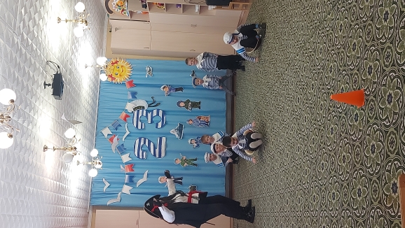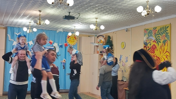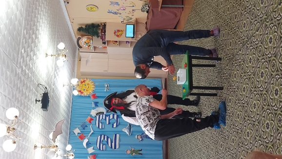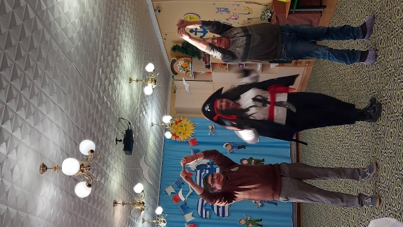 В роли пирата - воспитатель Гоголева Алевтина, в роли капитана - Гоголева Ирина