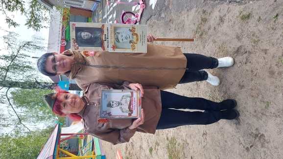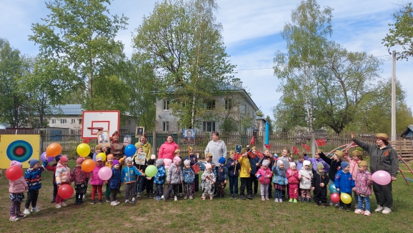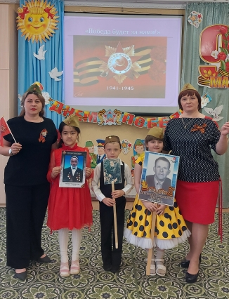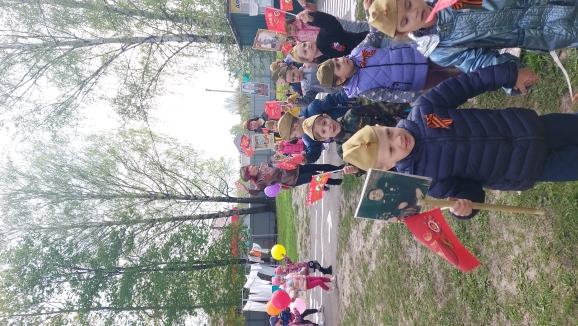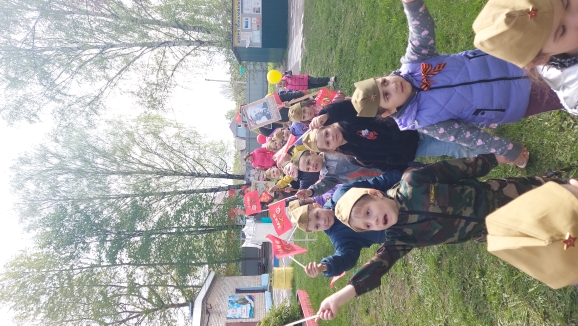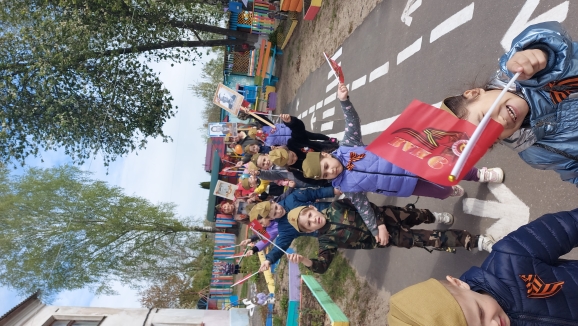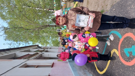 Наш детский сад присоединился к акции, 7 мая 2025 года наши ребята прошлись вокруг детского сада с фотографиями своих прадедов под песни военных лет.