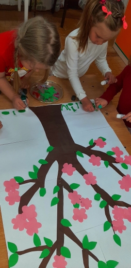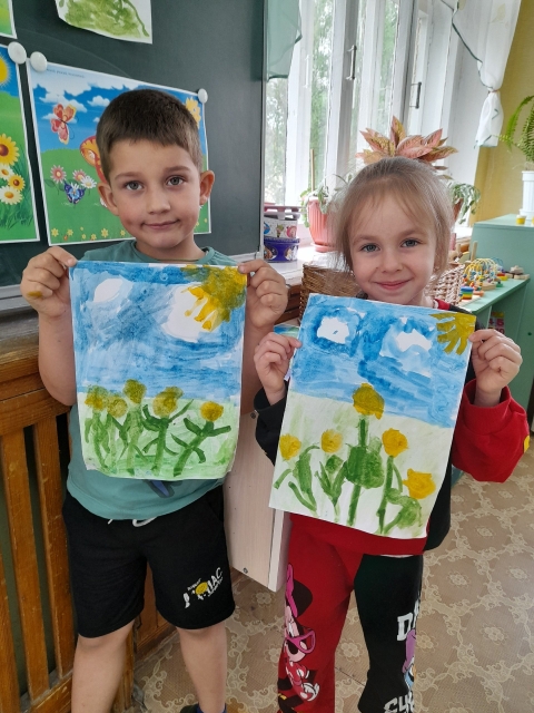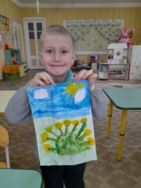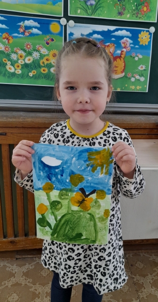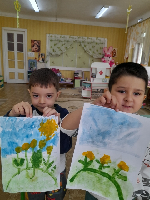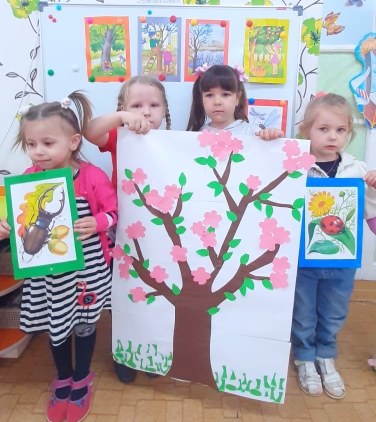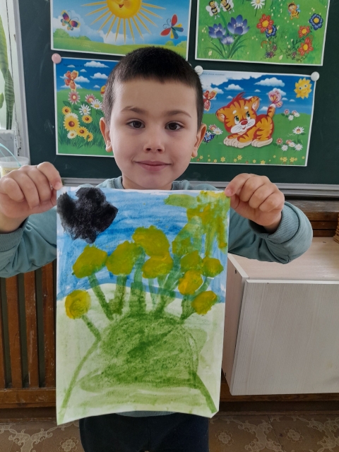 Посмотрите , какие яркие работы у них получились- одуванчики и цветущая яблоня от наших Звездочек и Непосед.