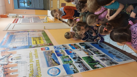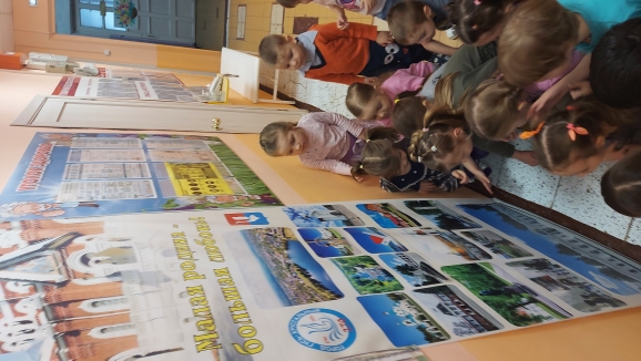 В саду появился новый стенд с достопримечательностями города Гусь-Хрустальный. Ребята с интересом рассматривали знакомые виды.