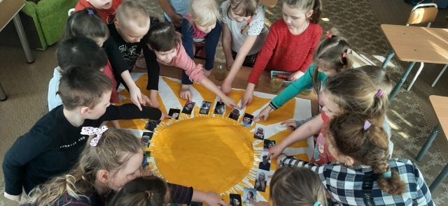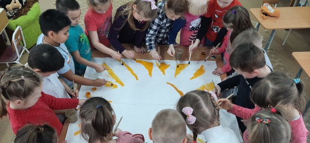 Ребята из подготовительной группы подготовили для своих мам сюрприз - картину "Мама- солнышко моё"