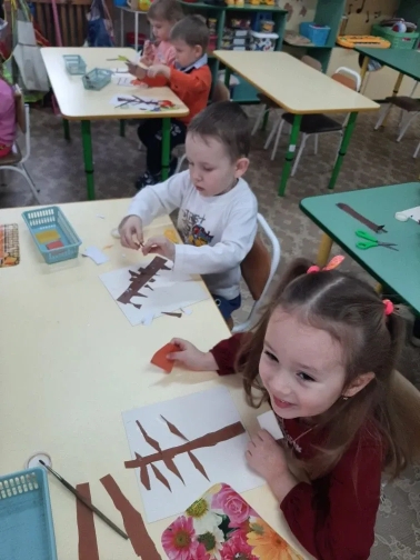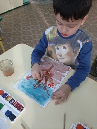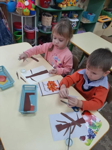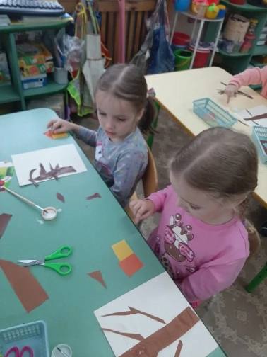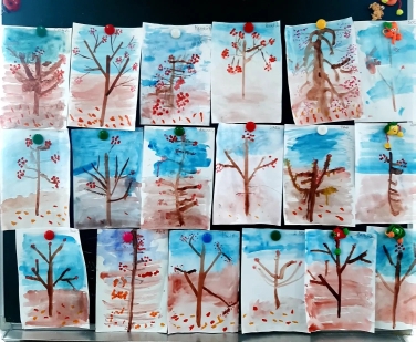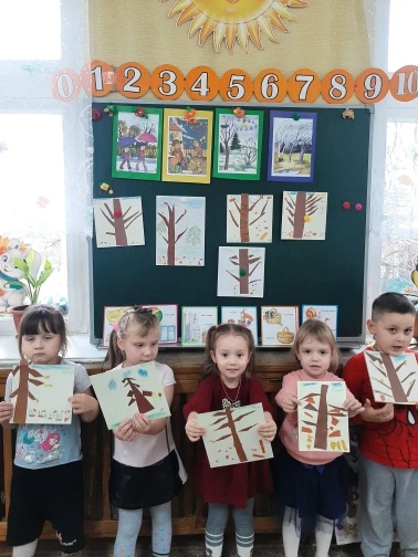 Наши ребята вдохновились картинами природы ноября - деревьями и птицами, прилетающими на участок .