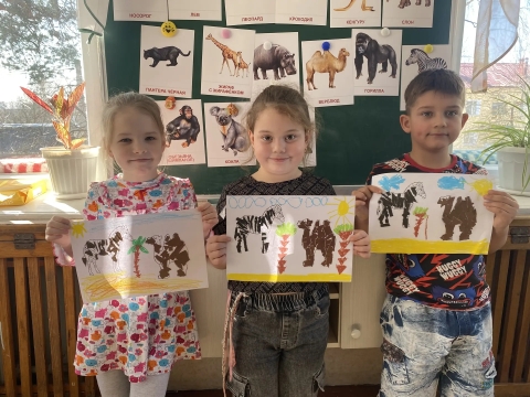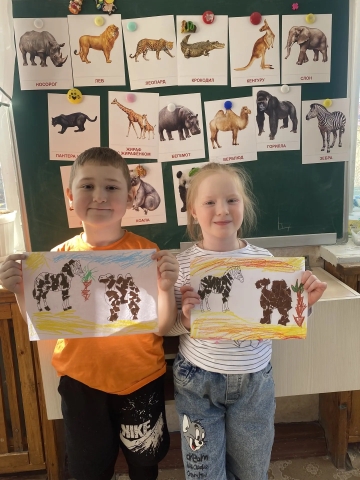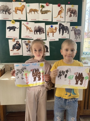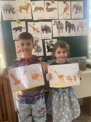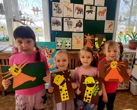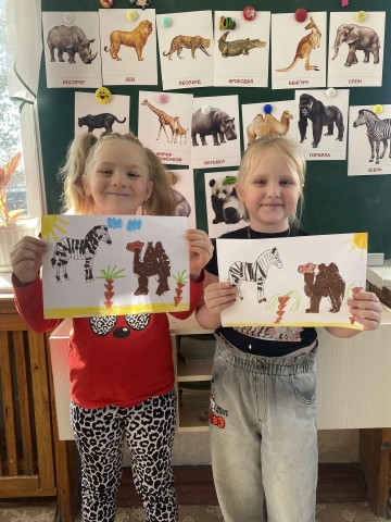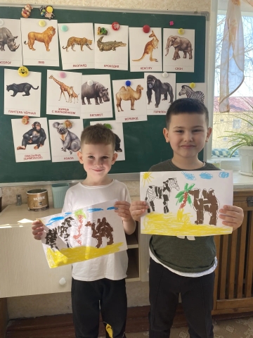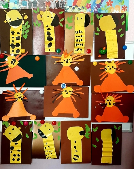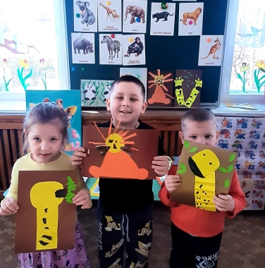 Ребята изображают животных жарких стран в рисунках и поделках. Правда, похожи?