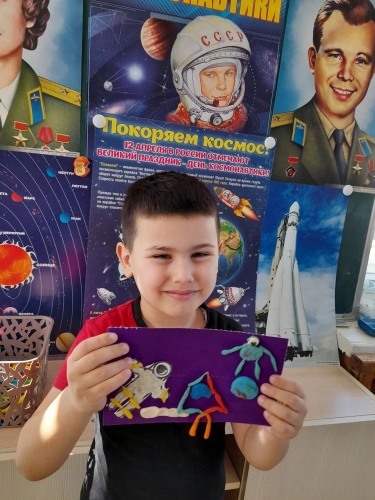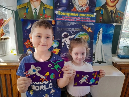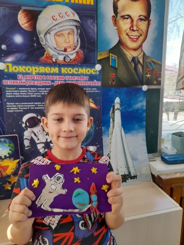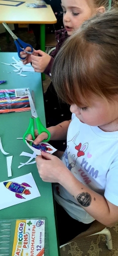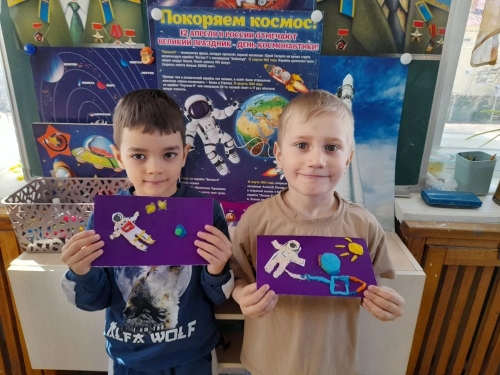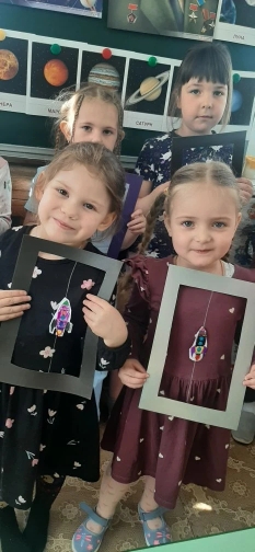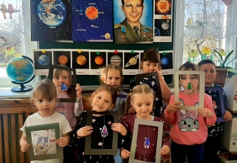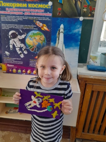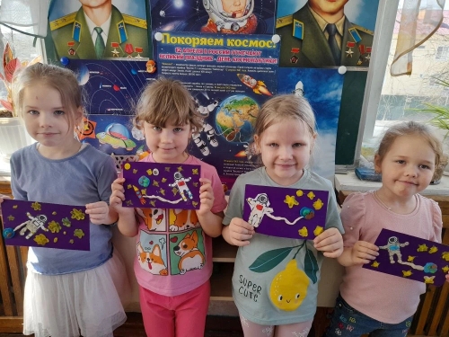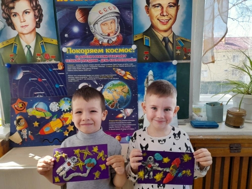 В саду проходит тематическая неделя, посвященная Космосу. Ребята творят на эту тему.