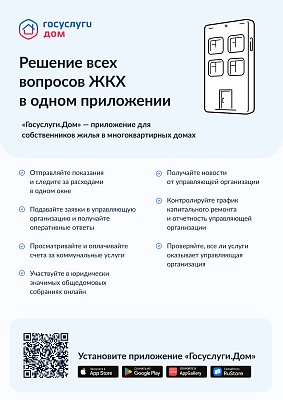 «Госуслуги.Дом» — это мобильное приложение для собственников жилья в многоквартирных домах. Оно создано для решения жилищно-коммунальных вопросов по принципу «одного окна» на базе государственной информационной системы ЖКХ.